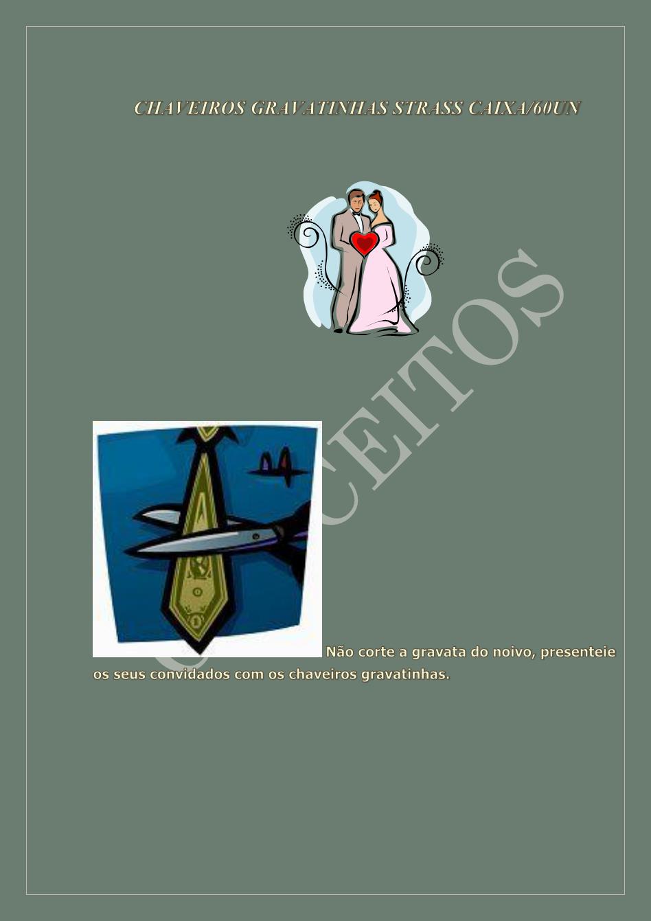 CHAVEIROS GRAVATINHAS COM STRASS E CARTÕES PARA CASAMENTO - CX / 60UN - R$ 25